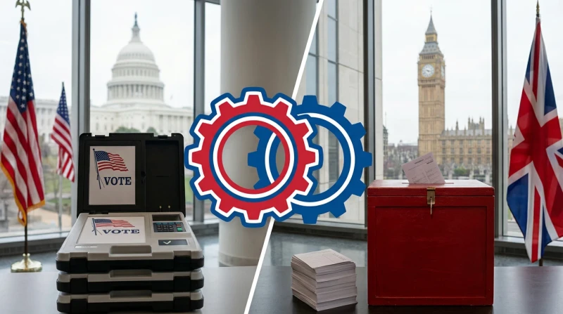 A comparative look at how the United States and United Kingdom conduct elections, from voting systems to counting methods and political implications.